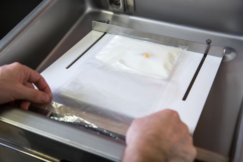 Bei der Zubereitung des Cheesecakes im SmartVide haben wir absolute Kontrolle über die Temperatur, was uns ermöglicht, stets dasselbe Resultat zu erhalten. Da wir den Cheesecake auf diese Weise pasteurisiert haben, können wir ihn sehr praktisch lagern.