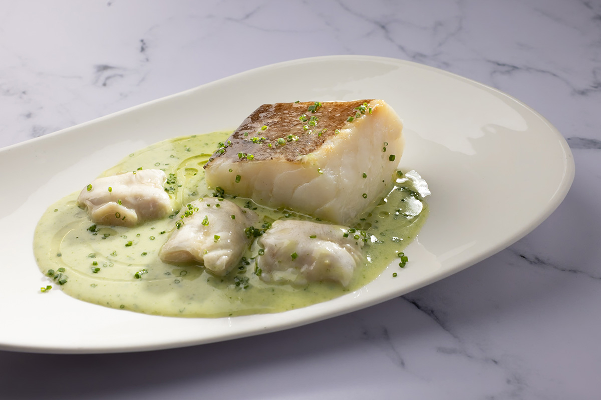 En esta receta, la técnica sous-vide permite una cocción perfecta y uniforme del bacalao y sus kokotxas, resaltando sus sabores delicados y manteniendo una textura jugosa.