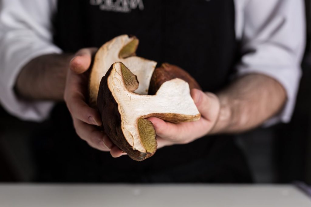 Para preparar la receta de hongos confitados con guisantes, empezamos limpiando los hongos de tierra con ayuda de un trapo húmedo. Después, cortamos los hongos en trozos iguales y los envasamos con el tomillo, el ajo y el aceite.