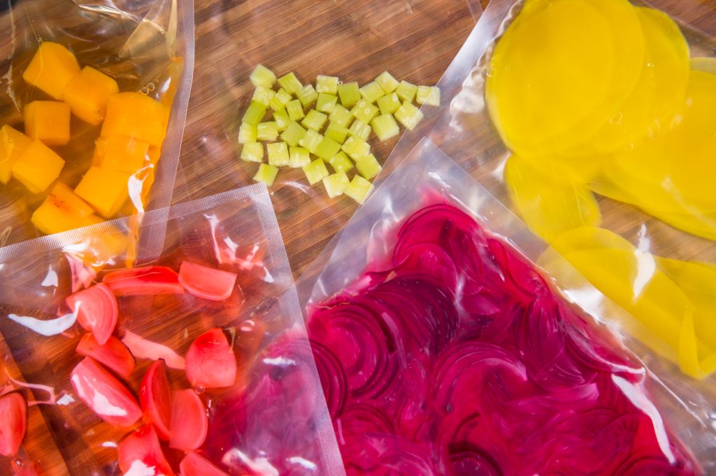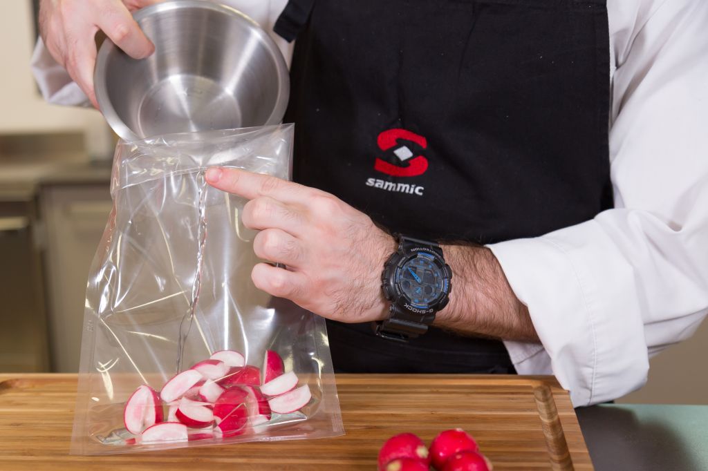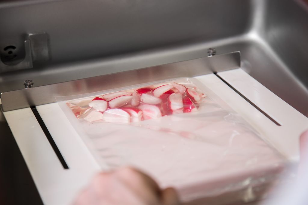 Depois do tempo necessário, cozinhamos a mistura no SmartVide a 65 graus durante 6 minutos. Escorremos e reservamos.