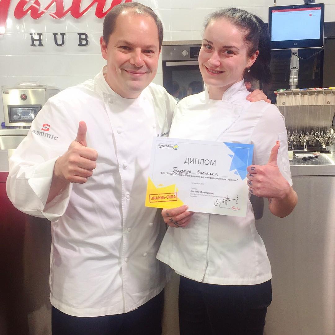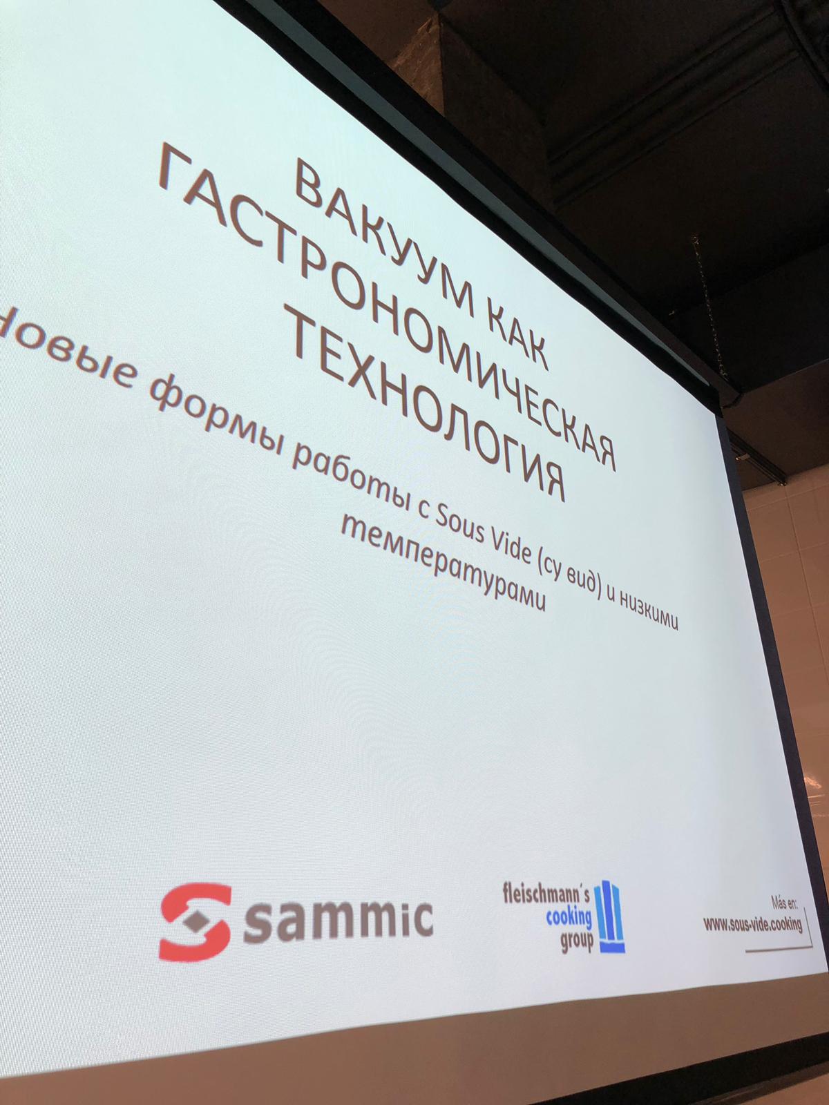 Our Corporate Chef, Enrique Fleischmann, and his co-worker of Fleischmann’s Cooking Group, chef Jesús Fernández Mena, accompanied by the Sammic Export Director Alfonso Acha, have traveled to Ukraine to give a masterclass of sous-vide cooking. Organized by our distributor Profitex and in partnership with Fontegro, yesterday, our colleagues gave an all-day workshop at the Gastro Hub (demo Kitchen that it is located in Kiev).